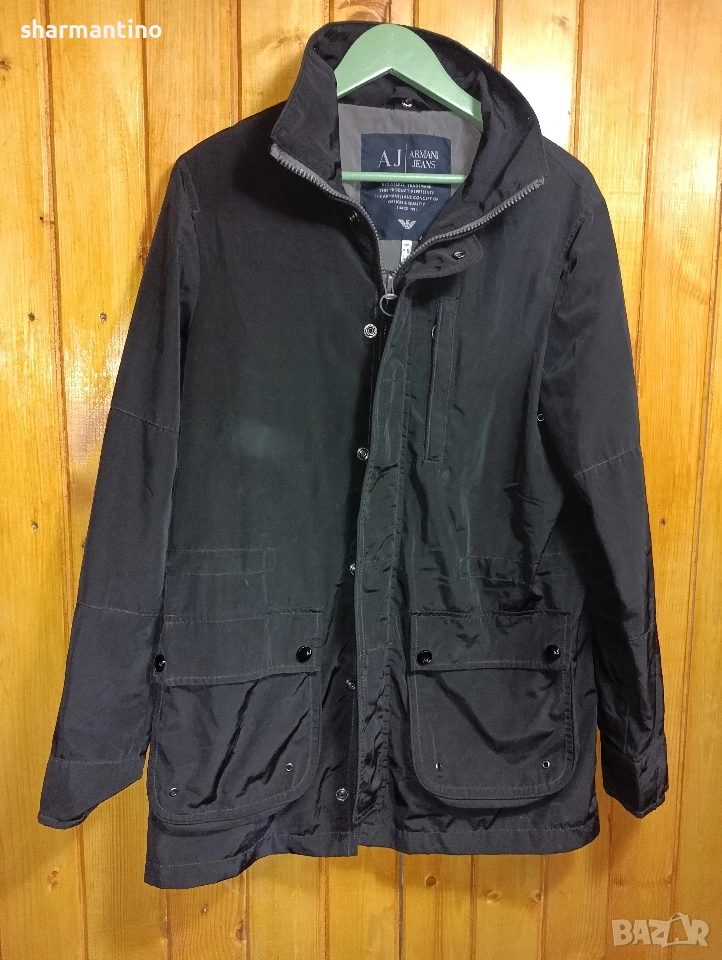 * МАРКА/МОДЕЛ- марково унисекс тънко яке / горнище Armani Jeans Denim в черен цвят. Made in Modena, Italy.