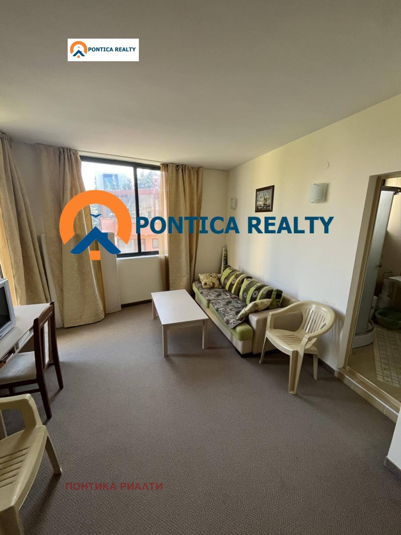 Предлагаме за продажба двустаен апартамент, напълно мебелиран и оборудван, разположен само на 500 метра от морето в Слънчев бряг.