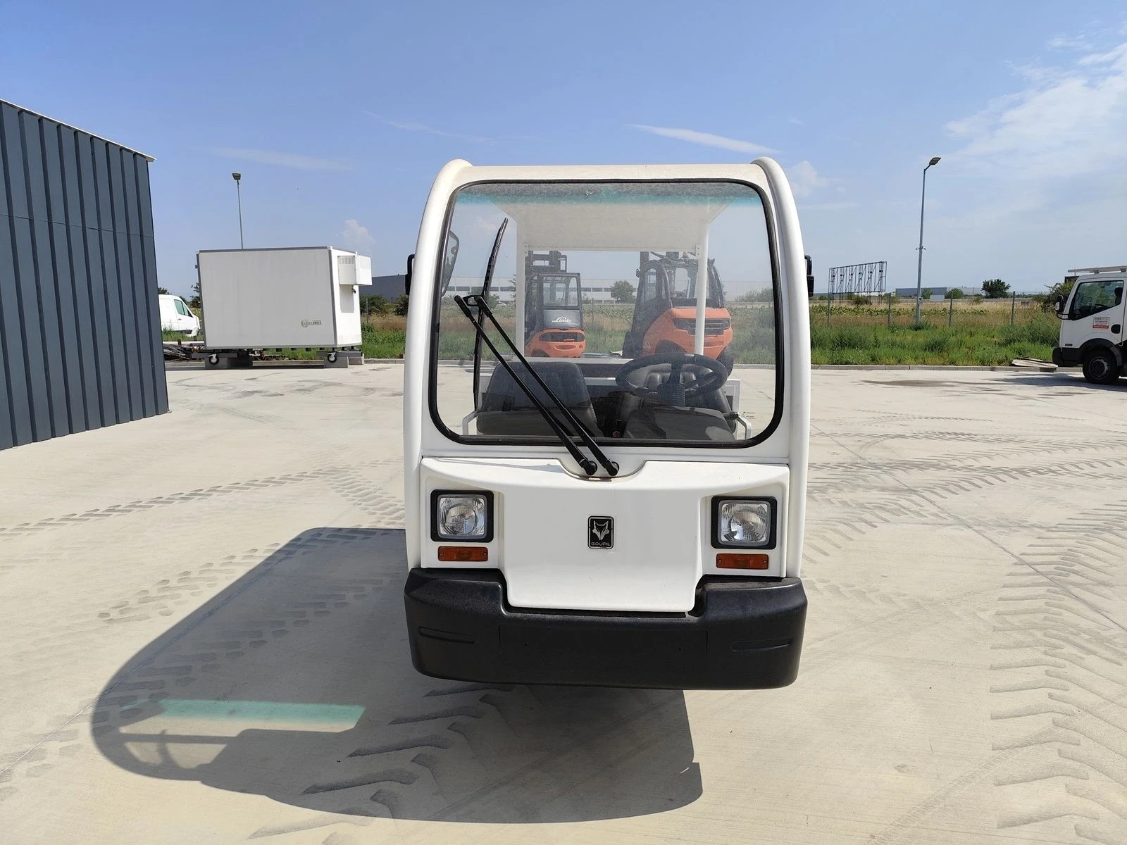 Характеристики: Електрически камион GOUPIL G3 с товарна платформа Употребявана батерия 80V 240Ah със зарядно устройство; Обща дължина 3, 80 м Обща ширина 1, 10 м Максимално тегло 2, 10 т Товароносимост на платформата 500 кг Възможност за теглене на ремарке 1 т Брой пътници 3+1 / 1+1 Размер на товарната платформа с 2 души 2, 40 х 1, 10 м Размер на товарната платформа с 4 души 1, 77 х 1, 10 м Пробег с 100% заредена батерия до 80 км Време за пълен заряд при 0% батерия 8 часа