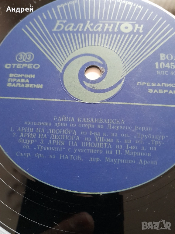Грамофонна плоча Райна Кабаиванска → Обява 52552463