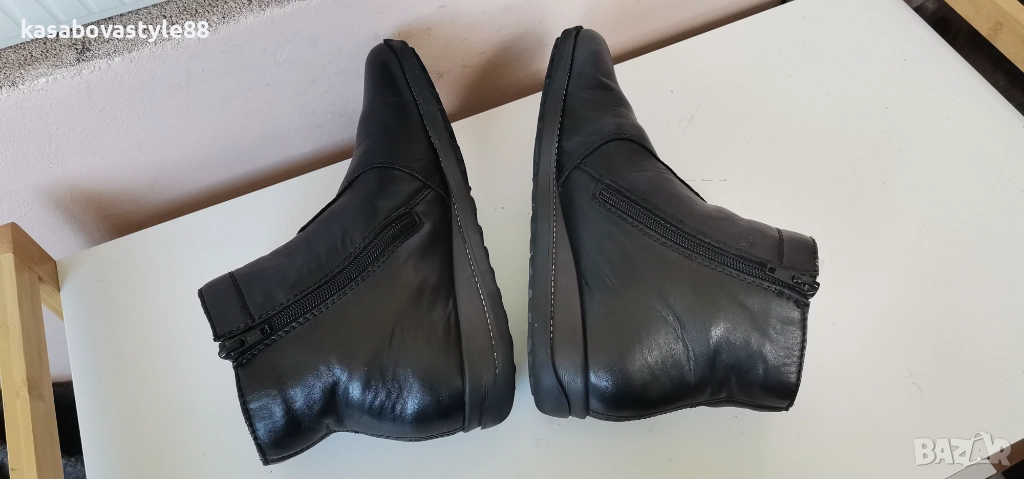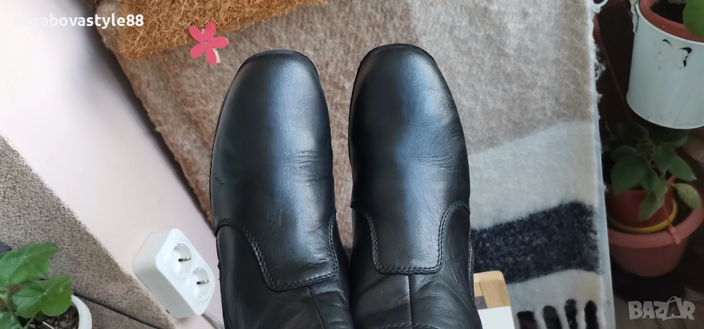 Дамски олекотени боти от немската марка Rieker В перфектно състояние. Те са направени от естествена кожа и топла вълна отвътре. Ходилото е ултра еластично и много комфортно. Разполагат от дветете страни с 2 функциониращи ципа. Отговарят на 39.5н.Дължина на стелка 25.8см.Цялостна височина отзад 14см.Ходило 2.5см.