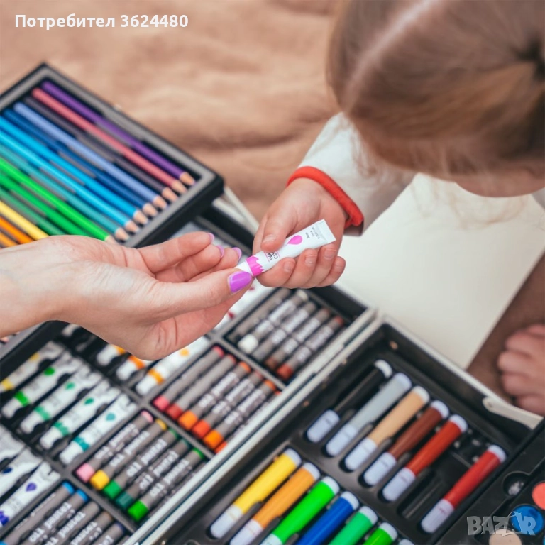 Този детски комплект за рисуване в куфарче е мечтаният подарък за всяко дете, което обича да твори! С впечатляващите 145 части, той предлага пълен набор от арт консумативи за всяка техника: