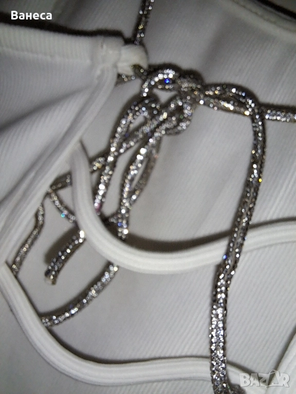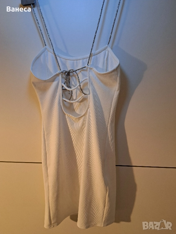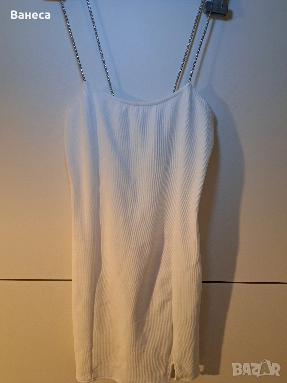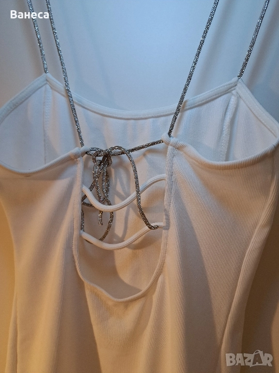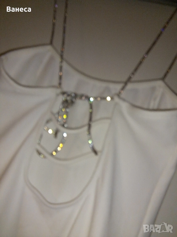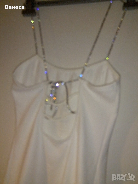 Роклята е чисто нова,но съм и махнала етикета. Презрамките са блестящи и гърбът е супер секси. Има и мъничка цепка отпред. По етикет е М размер,но спокойно ще стане и за С,а според мен е възможно и Хс.Има еластичност. Закупена е за 39,95лв.