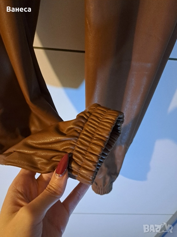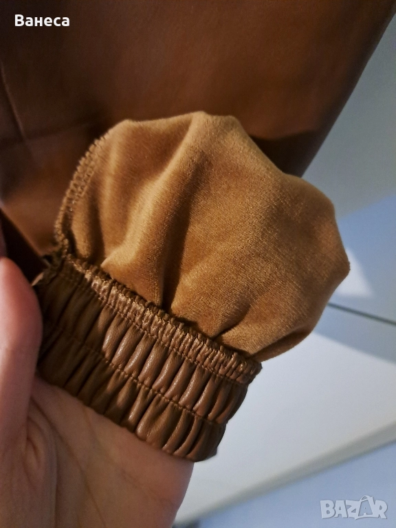 Панталонът е кожен,отвътре има топла вата. В много актуален цвят за сезона.