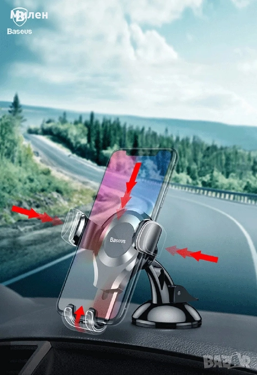 Стойка за телефон Baseus с вендуза в кола. Стойката се
