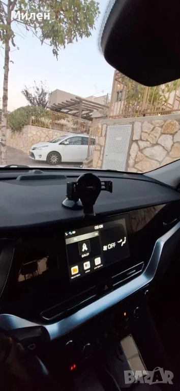 захваща с вендуза на автомобилното табло или стъклото и държи телефона