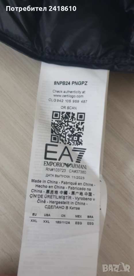 Armani EA7 Mens Down Jacket Slim Fit Size 2XL НОВО! ОРИГИНАЛ! Мъжко Олекотено пухено Яке!