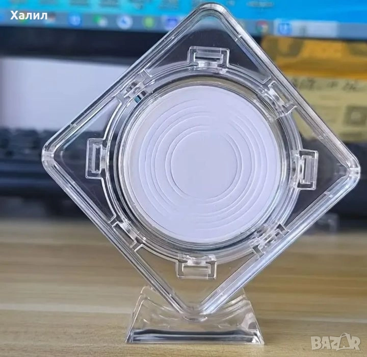 прозрачна пластмасова капсула за съхранение на монети. Капсулата има квадратна форма и е подходяща за съхранение и защита на колекционерски монети.