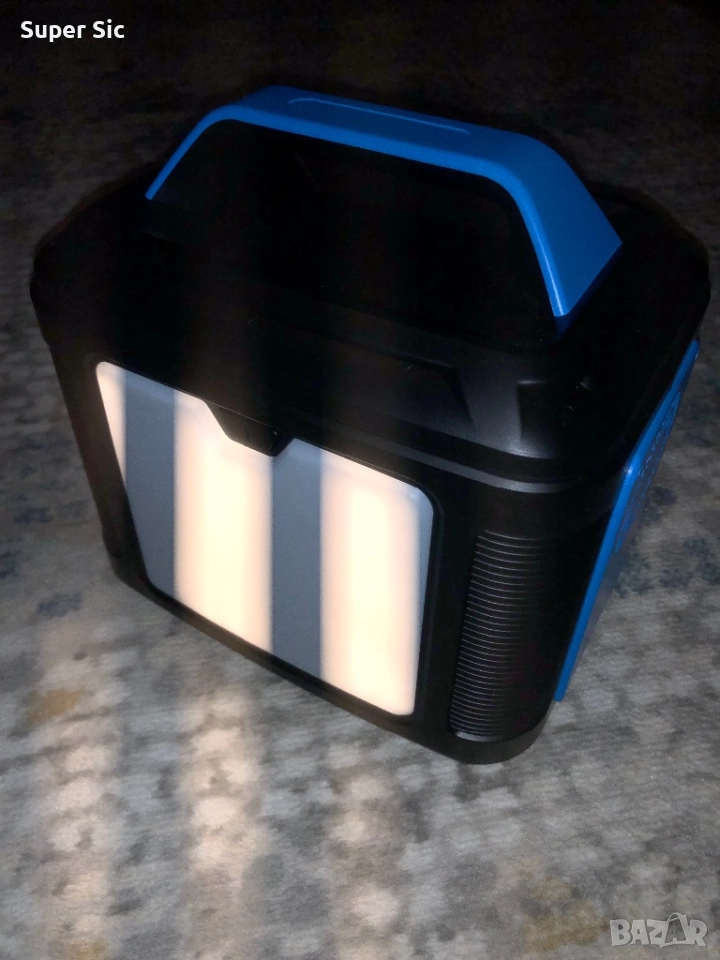 Преносима зарядна станция SBAOH P86 с мощност 300W и капацитет 296Wh. Идеална за зареждане на различни устройства, когато сте на открито или без достъп до електричество. Чисто нова само отворена за тест има кутия и всичко останало. Купух по-мощна и за това тази се продава. Може да се зарежда от кола,соларен панел или от ЕЛ. мрежата. На нея има и голяма лед лампа. Тегло 3кг.