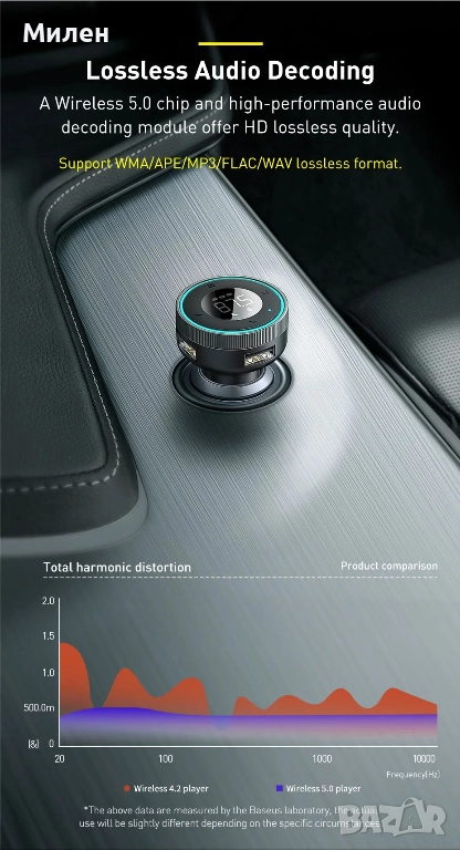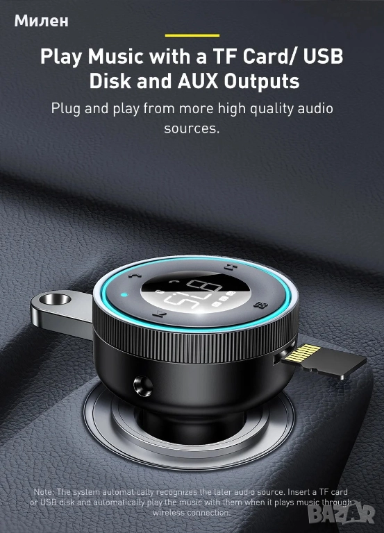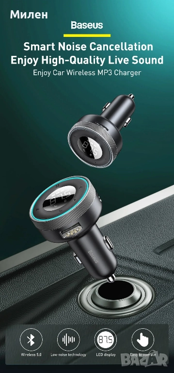 или AUX връзка. Предавателят Baseus Enjoy Car минимализира ненужния шум и
