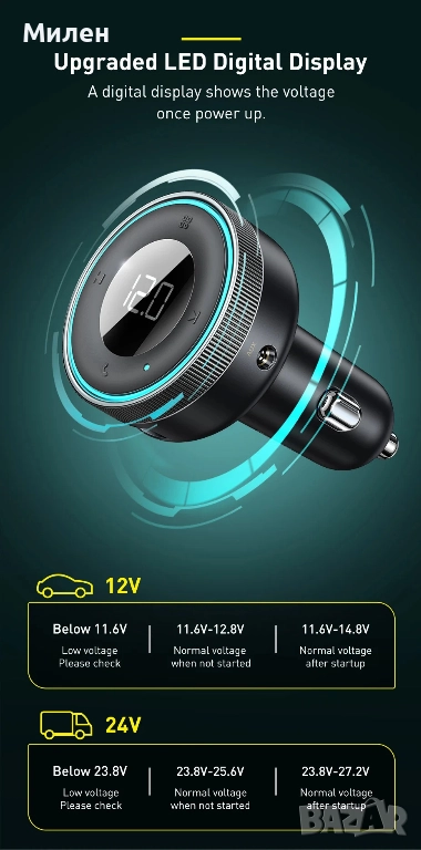 с вашия пътник и да свържете 2 устройства едновременно.LED дисплеят ще ви предостави информация като текущото напрежение и