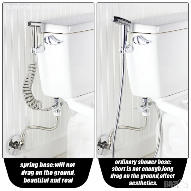 Многофункционално приложение – Освен за лична хигиена, този универсален ръчен биде душ е перфектен за почистване на домашни любимци, измиване на тоалетната, изплакване на килими и бебешки пелени.