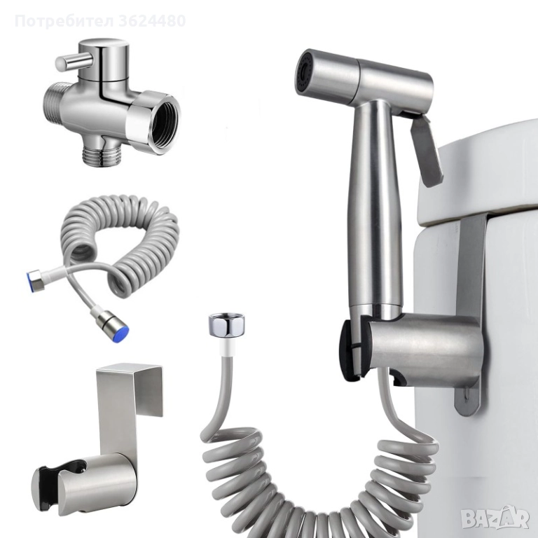 Ръчен биде душ за тоалетна – Комплект от неръждаема стомана с 3-посочен вентил