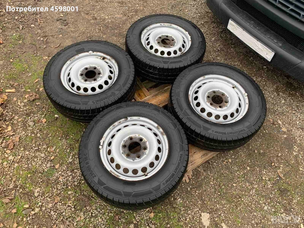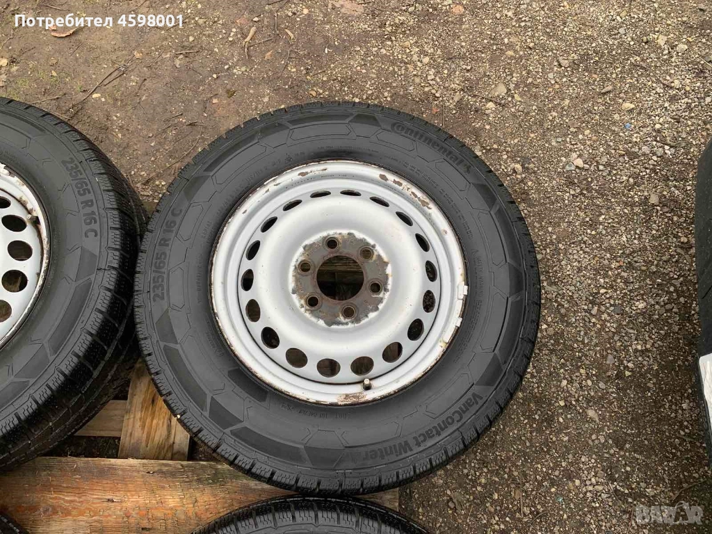 4броя Нови Зимни Гуми Continental 235/65/16C VanCotact Winter DOT2624 + Джанти 16цола 6x130 за Mercedes Sprinter, Vw Crafter. Цената на един брой гума от този клас е 390лв в магазина.