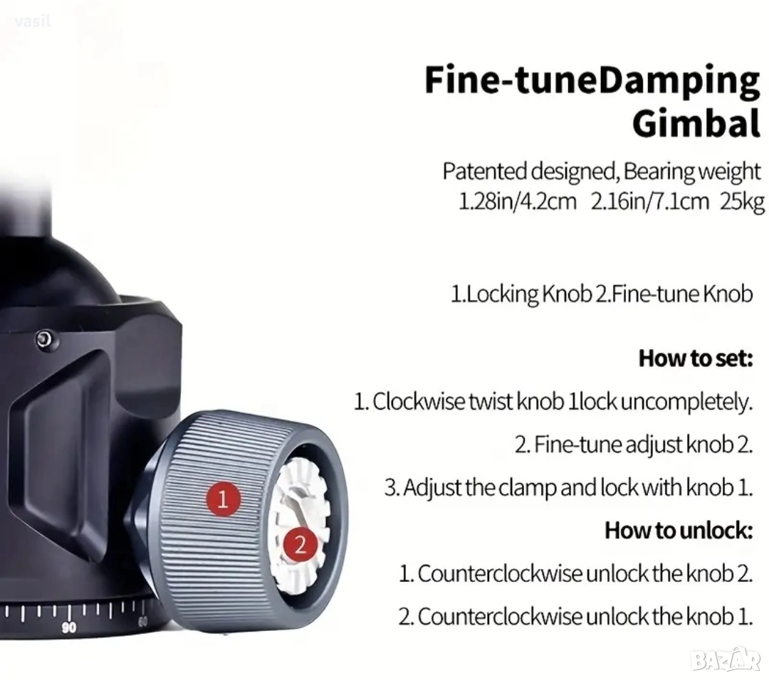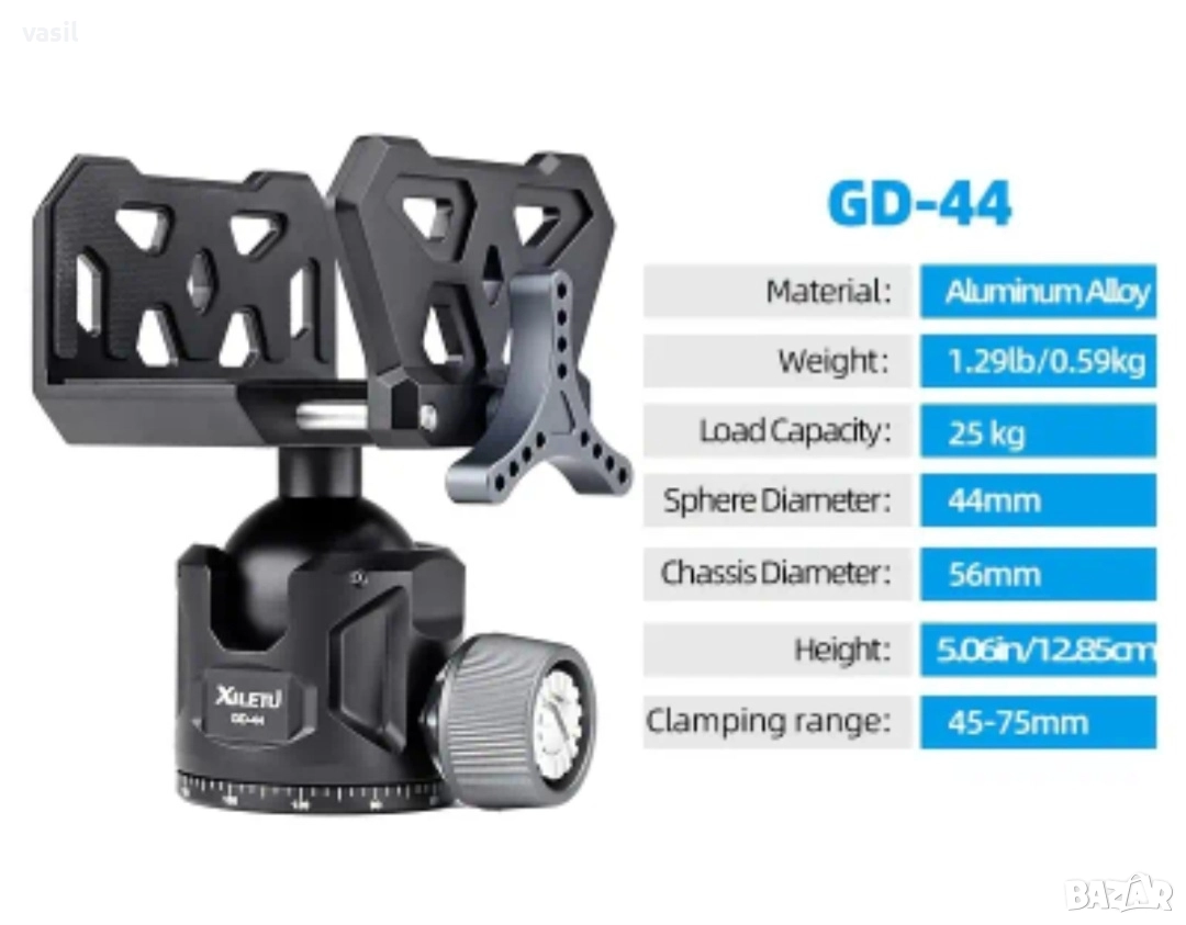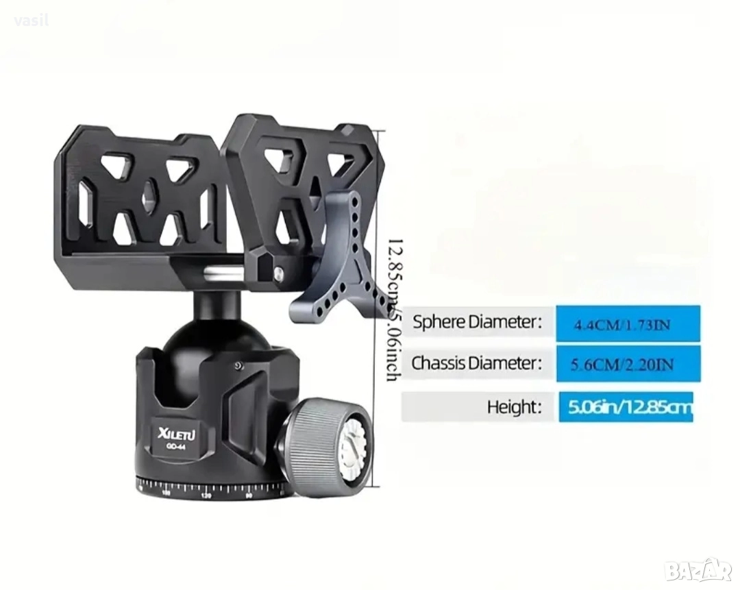 🧭 Универсална алуминиева стяга XILETU GD-44 – професионална стабилност и прецизност! 🔩 Материал: висококачествен алуминиев алуминий ⚙️ Товароносимост: до 25 kg 📏 Размери: Височина: 12.85 cm Диаметър на сферата: 44 mm Диаметър на основата: 56 mm Диапазон на захвата: 45–75 mm 💪 Характеристики: ✅ Изключително здрава алуминиева конструкция с гумирани подложки за стабилен захват. ✅ 360° панорамно въртене и U-образен жлеб за 90° вертикален ъгъл – перфектно за снимки, наблюдение или стрелба. ✅ Двойна система за заключване – основен заключващ бутон + фино регулиране за плавно и точно позициониране. ✅ Прецизен лагер с плавно движение и висока устойчивост. ✅ Съвместима с повечето стативи, фото глави и опорни платформи (1/4" и 3/8" резба). 📸 Идеален избор за: Монтиране на оптики, фотоапарати, телефони или уреди за наблюдение PCP пушки и стрелкови стативи Фотографи, ловци и стрелци, търсещи максимална стабилност ⚖️ Тегло: 0.59 kg 📦 Модел: XILETU GD-44