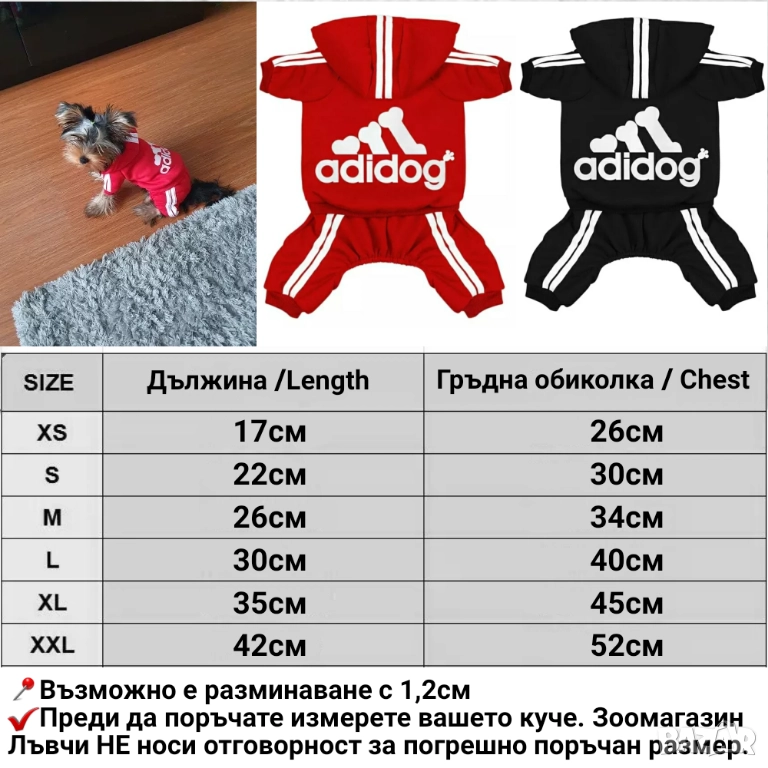 Гащеризон за куче Адидог. Дрехи за кучета. Кучешки дрехи. Панталони за кучета