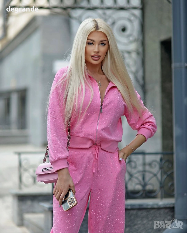 Излъчвайте стил и увереност с нашия дамски спортен екип – перфектното съчетание между комфорт и елегантност. Моделът впечатлява с изчистен дизайн, който подчертава силуета, а фините кристалчета добавят нотка блясък и женственост.