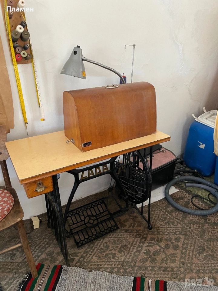 Машината работи.Доста запазена,с дървен плот.За повече информация на лично.