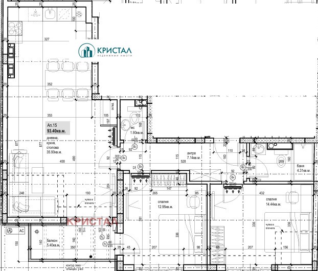 Агенция ''Кристал'' предлага за продажба 3-стаен апартамент ново строителство с АКТ 14 в малка бутикова сграда.