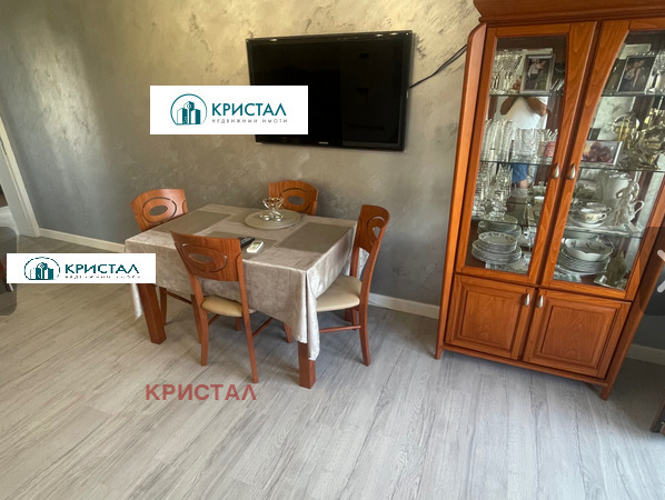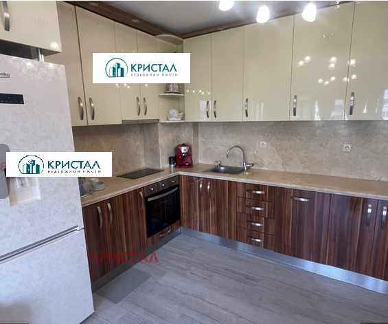 Оф. 140828 Агенция Кристал предлага за продажба многостаен обзаведен апартамент . Две спални с опция за още две ако имате 3 или повече деца, хол с просторна кухня и тераса към Родопите.Двете спални са с лице към младежкия хъл и Стоматологичния университет с голяма тераса 25 кв.м. Стаите са на висок клас немски паркет с телевизори мебели и климатици нови.Баня и тоалетна с италиански плочки и .В хола има кожена естествена гарнитура внос от Виченца. Кухнята е с огромен хладилник , печка , съдомиална и пералня вградени .Мраморни плотове от най качествения мрамор.Аспирация на Teka Ispania.Асансьор хидравличен .Апартамента е без ипотеки и тежести. Парк и градина отпред. Свободни места за паркиране за всеки живущ..