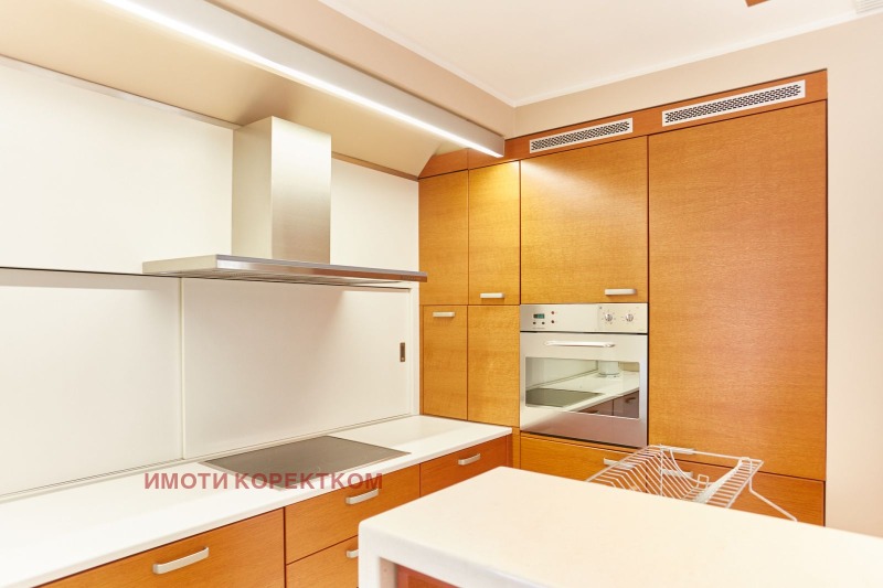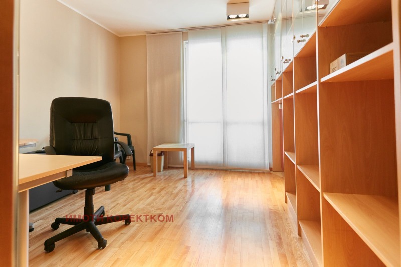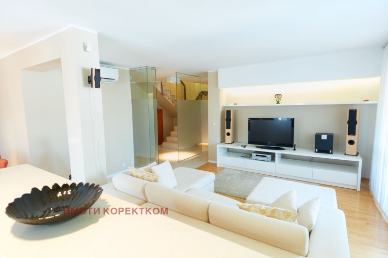 Първи етаж: обширно фоайе с баня и тоалетна, дневна с кухня и трапезария и 1 стая (може да е кабинет или спалня). Две прекрасни тераси с панорамна гледка към училище, Витоша и зеленина, без опция за близък строеж позволяват множество проекти.