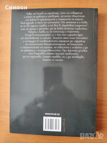 Това, че Гешев по характер, стил на поведение и начин на работа е затворен, не много общителен или както в публикациите и спомените се нарича вълк-единак, е част от истината. От значение е и това, че за 20 години служба и то все в Държавна сигурност, той се среща с десетки, да не кажа стотици служители. Работи с какви ли не началници и подчинени. И тук в отношенията си с тях той издържа един от най-тежките си изпити. Защото няма нищо по-сложно и по-трудно в чиновническата йерархия да издържиш на личностните взаимоотношения, на капризите и странностите на хората, на завистта и злобата и да се пребориш с посредствеността. При жестоки условия той в еднаква степен прилага правилото: да се подчинява, когато трябва, но и да заповядва, когато се налага.