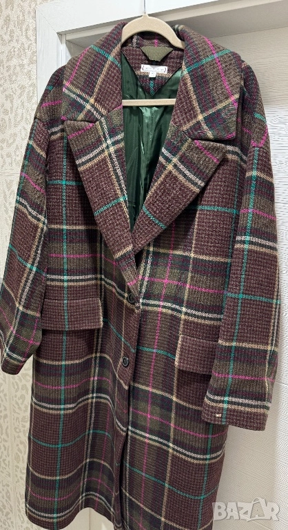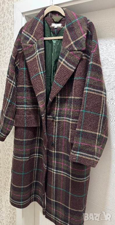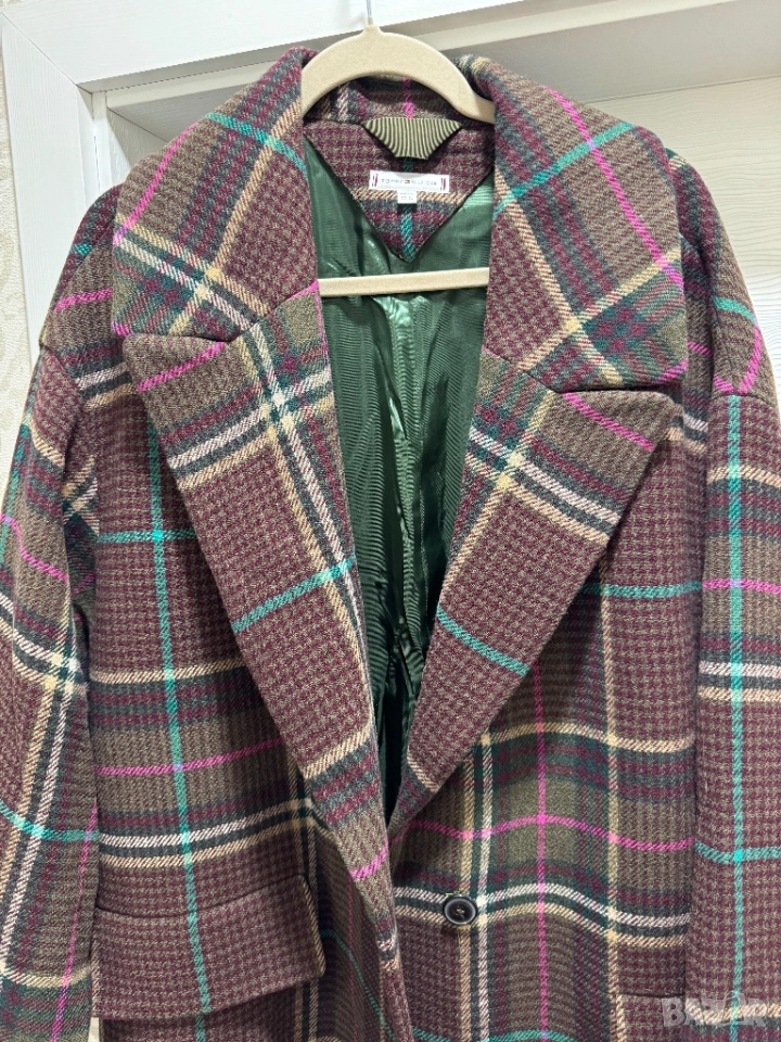Купено е от Модиво,преден сезон.Не е носено,със зашити джобове-мислех да го нося с колан,но така и не си намерих подходящ.С паднало рамо и с тънък хастар отвътре.Страхотна комбинация от цветове,внасящи настроение в мрачнотото и студено време през сезонът.
