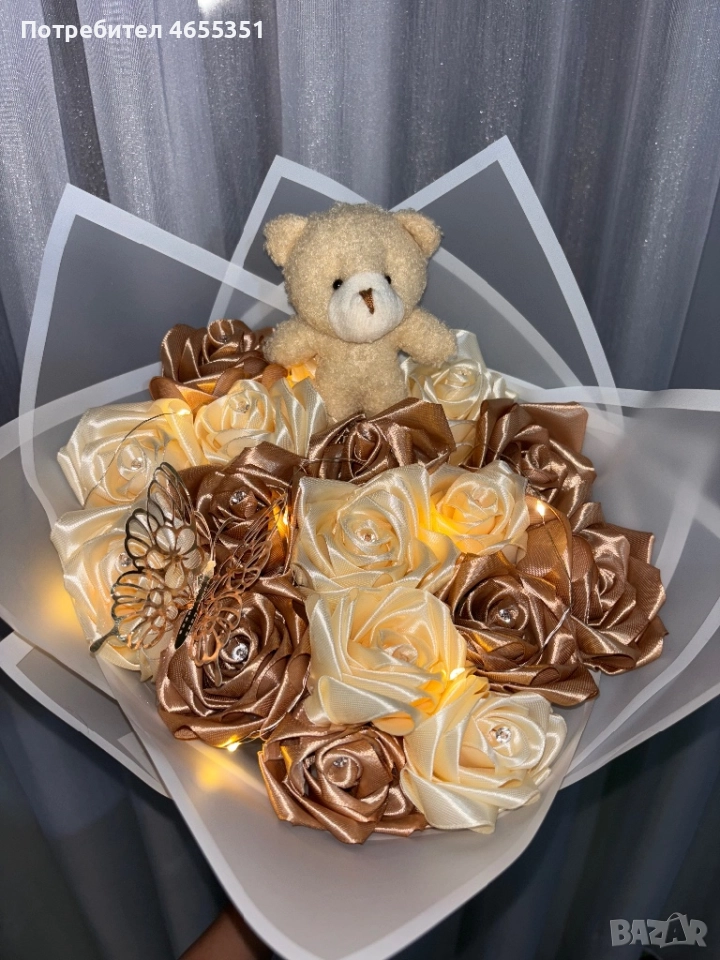 Предлагам уникални ръчно изработени вечни букети от сатенени рози, създадени с внимание към всеки детайл.Вие сами избирате цвета,опаковката,стила и декорацията.Всеки букет е изцяло авторска изработка и е подходящ за: