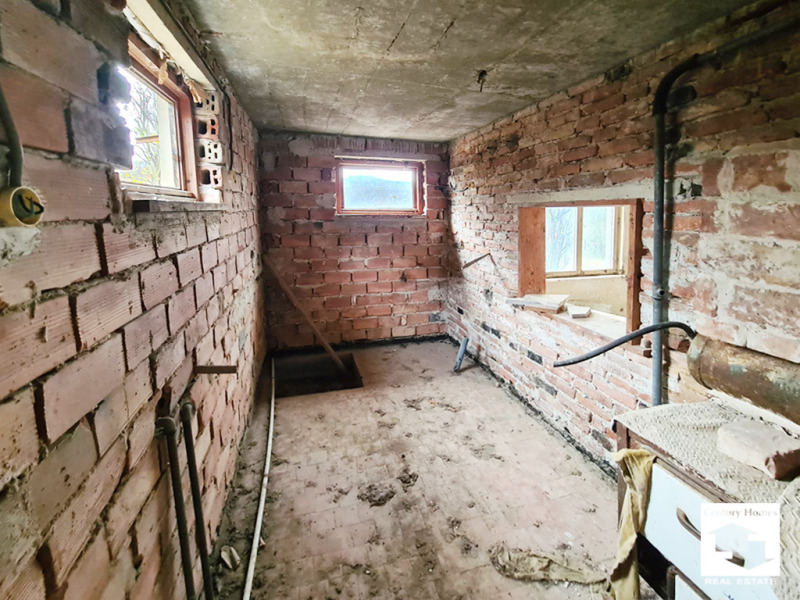 В двора са разположени две двуетажни къщи - стара и нова, една допълнителна стая между тях и плевня. Имота разполага с партиди за ток и вода. Постройките са за генерален ремонт, което позволява на новите собственици да реализират собствен проект според предпочитанията си. Новата къща е на етап груб строеж и разполага с две стаи на първия етаж, две стаи на втория и вътрешно стълбище, а на трето ниво е изградена покрита панорамна площадка с красива гледка към околностите. Старата къща е с традиционна архитектура, с маза на приземния етаж, външно стълбище към чардак и три помещения на втория етаж. Между двете постройки има самостоятелна стая с равен покрив, който може да служи като основа за свързване на сградите или оформяне на просторна тераса.