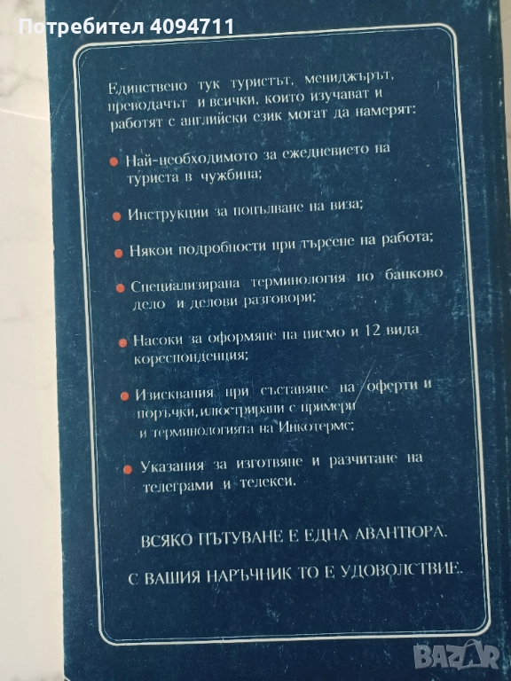 Българо-Английски наръчник за пътуване и бизнес → Обява 52557348