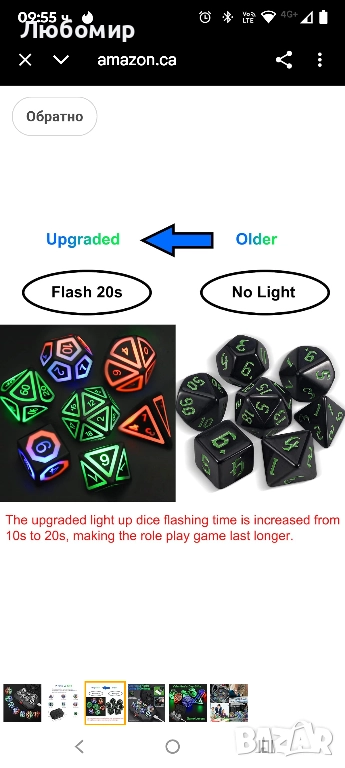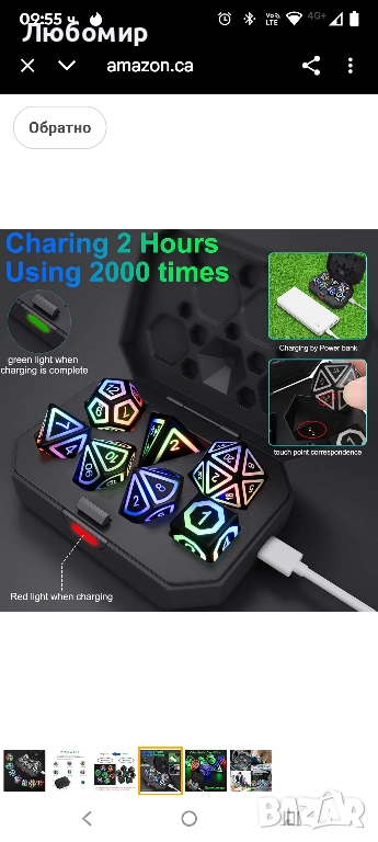 едното зарче не зарежда.Комплект зарове D&D с презареждащи се елементи, светещи зарове, 7 електронни светещи и балансирани зарове, зарове D&D, многостенни зарове за ролеви игри.Светеща акула: Комплект от 7 DND зара със сини, зелени и червени LED светлини; многостенните зарове светват автоматично при хвърляне или при удар и мигат в продължение на 20 секунди; светещите зарове могат да се използват непрекъснато 2000 пъти след 2-часово зареждане; сега грабнете заровете си и ги хвърлете!