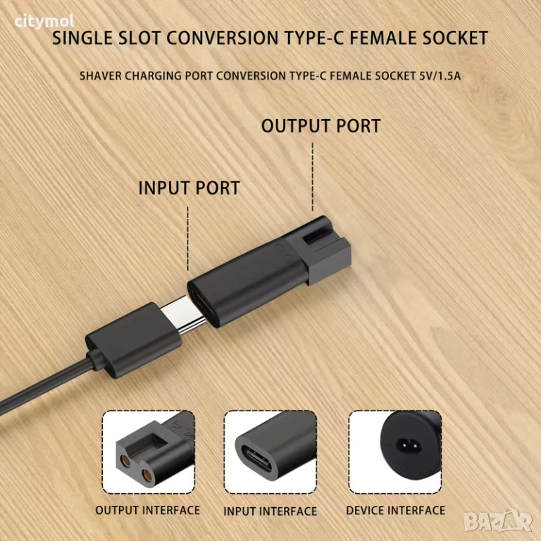 Адаптер за зарядно Type-C, за електрически машинки за подстригване, тримери за брада, самобръсначки и инструменти за красота. Екологично чист пластмасов материал, безопасен, екологичен и издръжлив. Материал: пластмаса