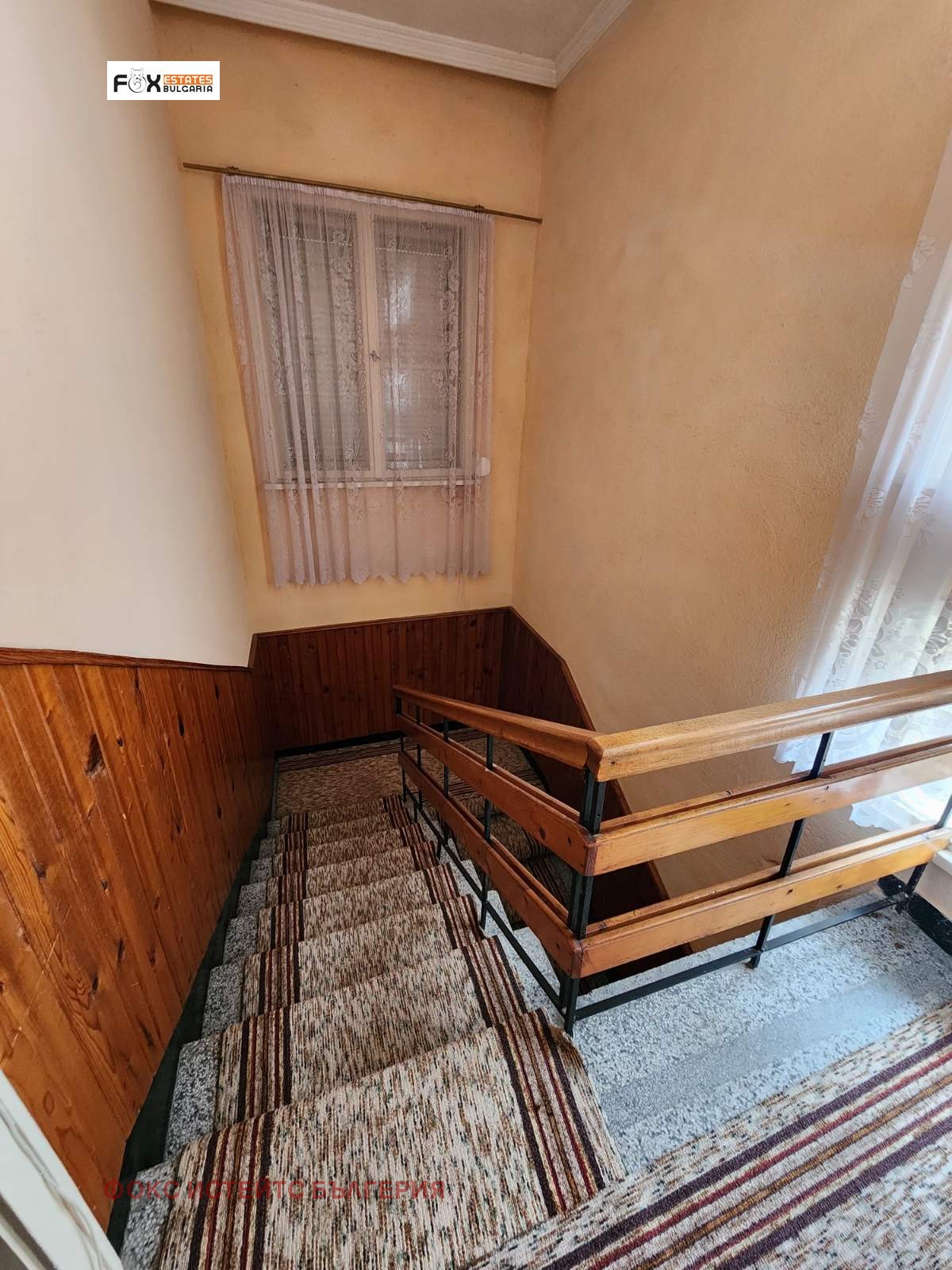 Вътрешно стълбище ,широко и осветено от прозорци,води към втори етаж (за който има и независим вход от външна,страна на къщата) ,който се състои от коридор,хол с трапезария и кухненски бокс,две големи спални,помещение за баня с тоалетна и голяма тераса.Напълно обзаведен и годен за ползване,веднага.Дограмата е дървена,двукатна в перфектно състояние,като на всички,прозорци има поставени,външни ролетни,щори.Подова настилка мозайка и балатум,стени на латекс.