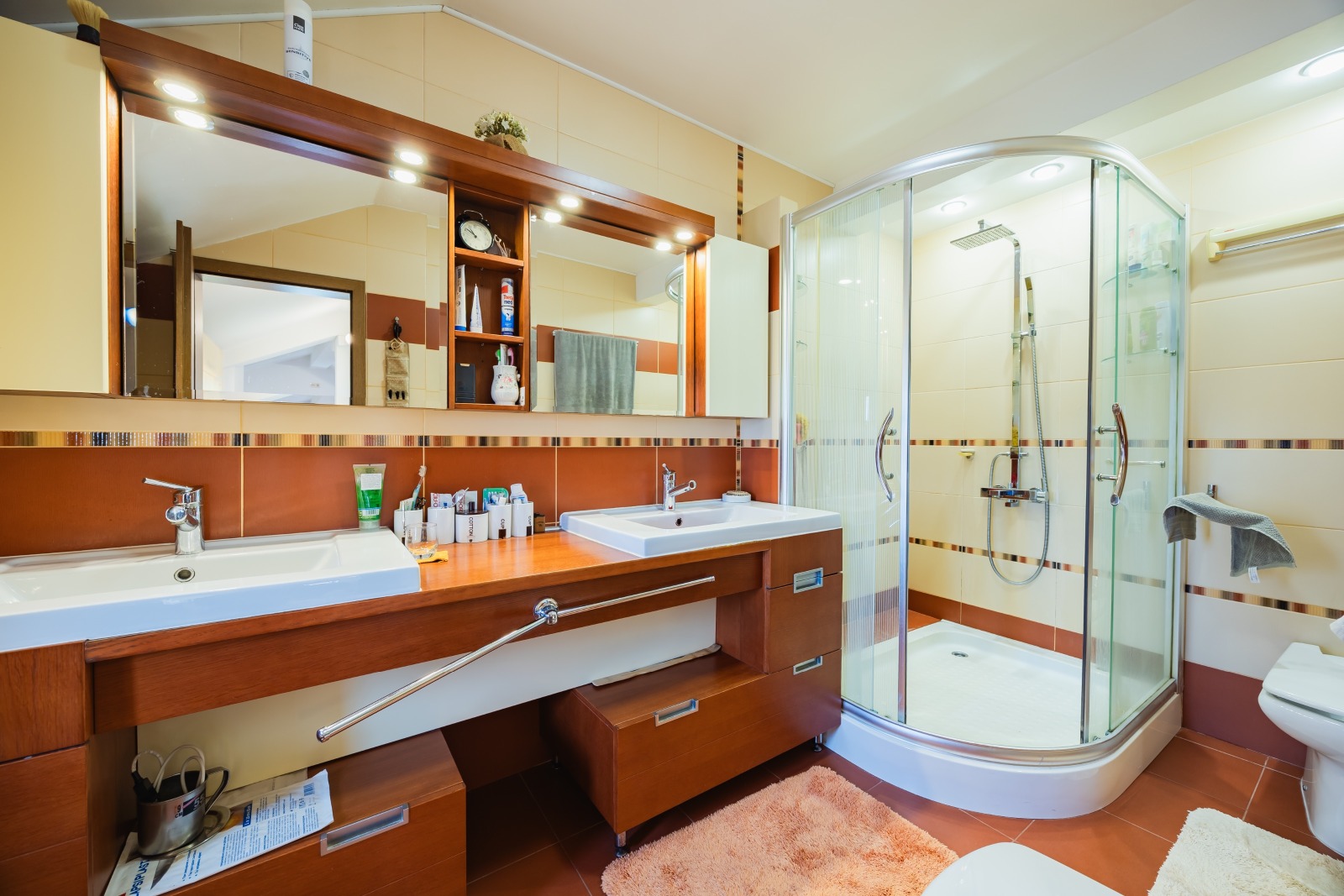 пет спални, четири бани, масивни изолационни стени, функционално мазе и просторен сутерен с два гаража с канали.