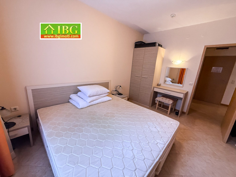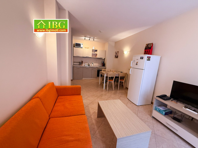 Апартамент за продажба в престижния комплекс Royal Sun, разположен на около 350 метра от плажа и на пешеходно разстояние от магазини, ресторанти и други удобства. Комплексът се простира на голяма оградена територия и предлага 2 големи басейна, отделен детски басейн, комбинирано спортно игрище, контролиран достъп, ресторант, снек бар, рецепция и просторно фоайе, SPA център, целогодишна охрана, паркинг. Комплексът има много добър рейтинг при резервации и е идеален за инвестиция, постоянно живеене и почивка.