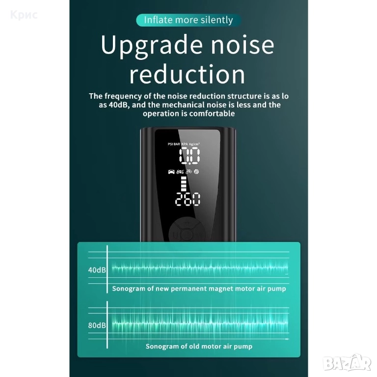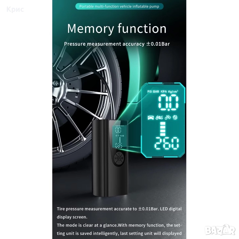 Преносим въздушен компресор за гуми с батерия., снимка 1 - Аксесоари и консумативи - 52558379 Преносим въздушен компресор за гуми с батерия., снимка 2 - Аксесоари и консумативи - 52558379 Преносим въздушен компресор за гуми с батерия., снимка 3 - Аксесоари и консумативи - 52558379 Преносим въздушен компресор за гуми с батерия., снимка 4 - Аксесоари и консумативи - 52558379 Преносим въздушен компресор за гуми с батерия., снимка 5 - Аксесоари и консумативи - 52558379 Преносим въздушен компресор за гуми с батерия., снимка 6 - Аксесоари и консумативи - 52558379 Преносим въздушен компресор за гуми с батерия., снимка 7 - Аксесоари и консумативи - 52558379 Преносим въздушен компресор за гуми с батерия., снимка 8 - Аксесоари и консумативи - 52558379 1/8