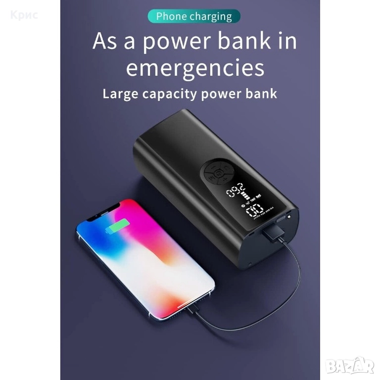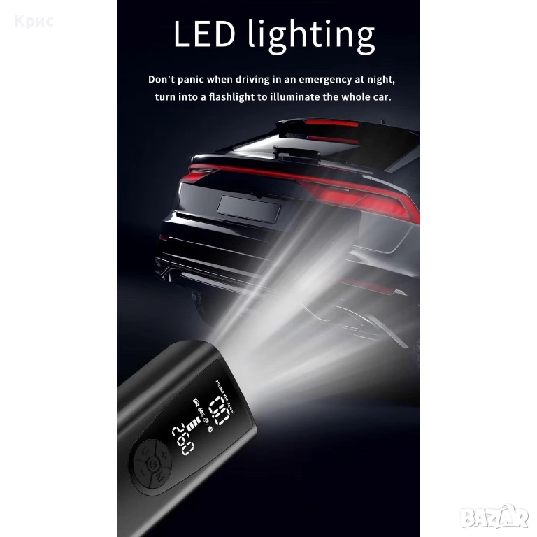 Преносим въздушен компресор за гуми с батерия. → Обява 52558379