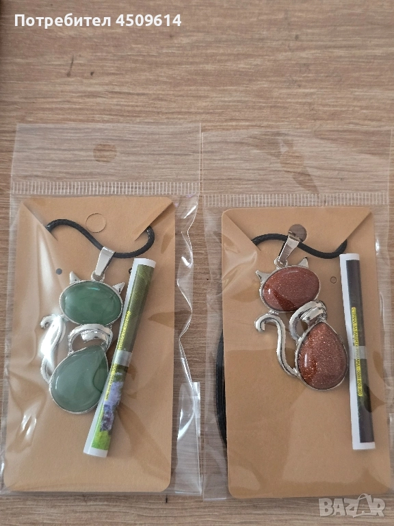 Колие с фигура на котка от естествени камъни → Обява 52558396