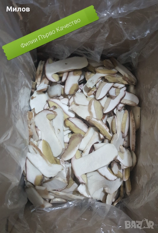 Замразените гъби Манатарка - Филии Първо и Филии Второ качество се предлагат в разфасофки по 7кг. и се продават единствено в съответните разфасовки.