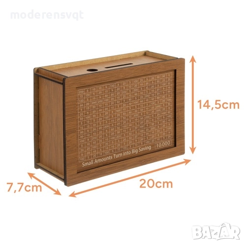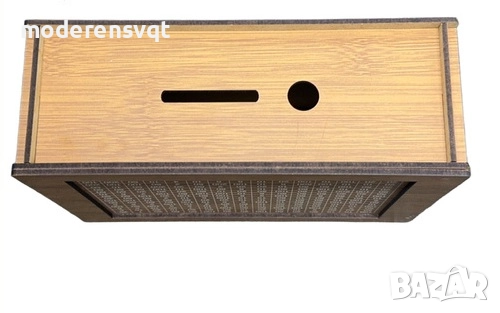 - естетичен дизайн: изработен от естествено дърво в кафяво и бежово с издръжлив принт