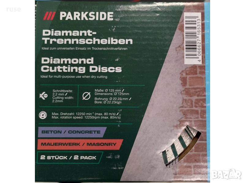 НОВИ! Диамантени дискове 2 броя 125мм Parkside PMNF 1500 за бетон и зидария