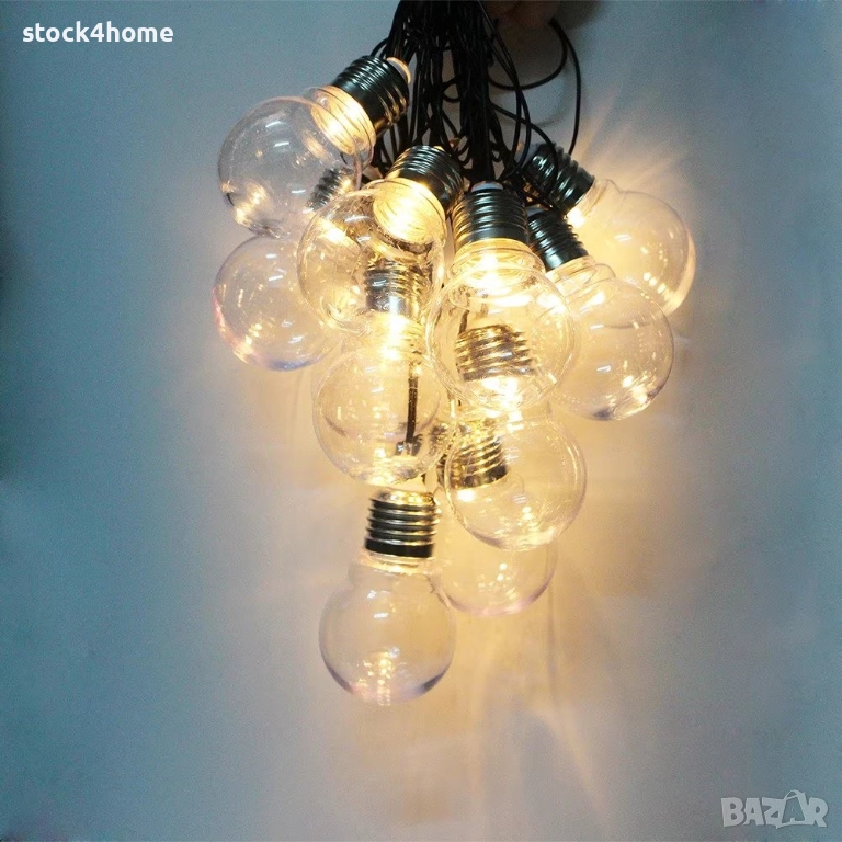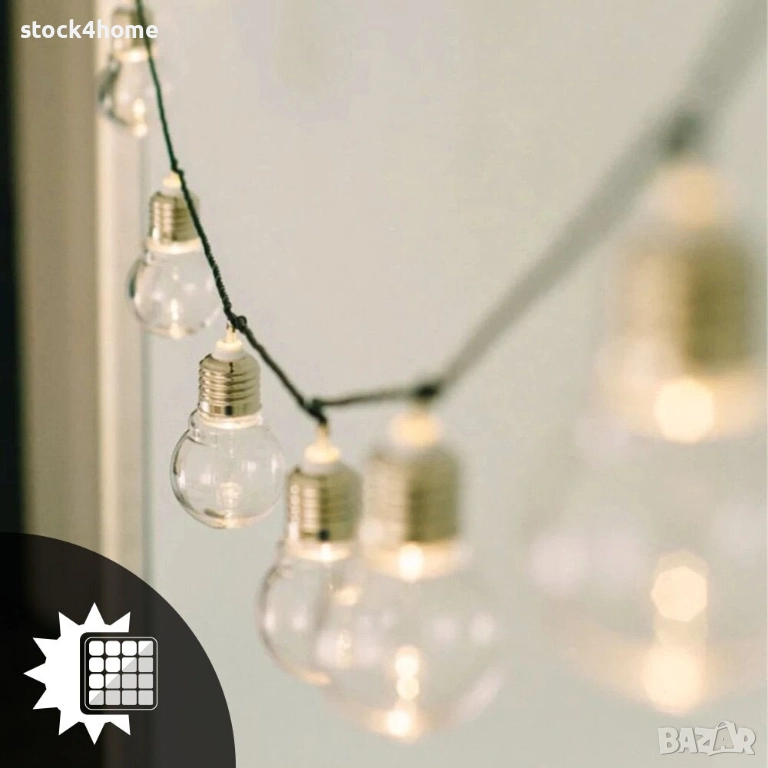 Гирлянд , соларен синджир с 10 прозрачни крушки в ретро стил ще превърне нашата градина, къща и тераса в чудо.