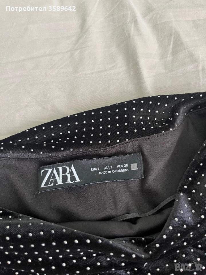 Черна, елегантен модел с един ръкав и дискретни блестящи точки, които хващат светлината красиво.