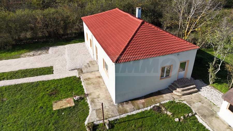 Имотът с РЗП от 85 кв.м е построен върху парцел с правилна форма и големина от 3 104 кв.м и разполага с лице на два пътя.