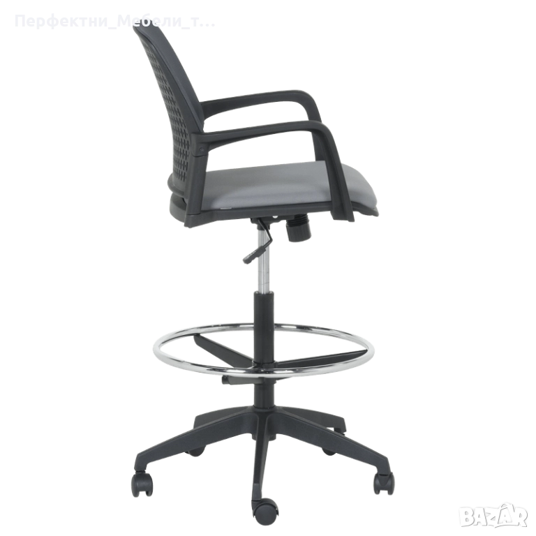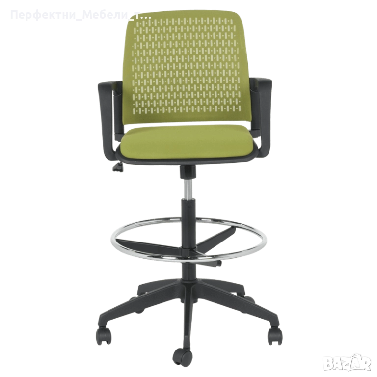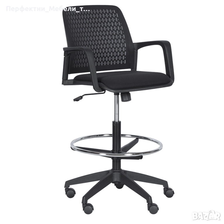 Бар кресло,висок работен стол с подлакътници,стол за рецепция,баров стол,стол с ринг за краката