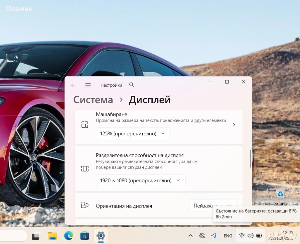 Операционна система: Windows 11 Pro – лицензиран и активиран / закупен заедно с лаптопа /