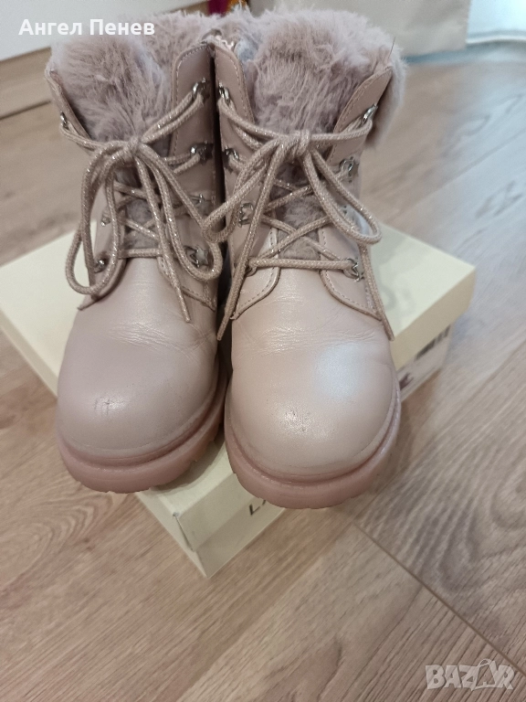 Детски боти LASOCKI от естествена кожа. Закопчаване : цип и връзки Вътрешна част: вата Размер : 30 Цвят : лаванулово розово Състояние : добро Забележки : драскотини на бомбето