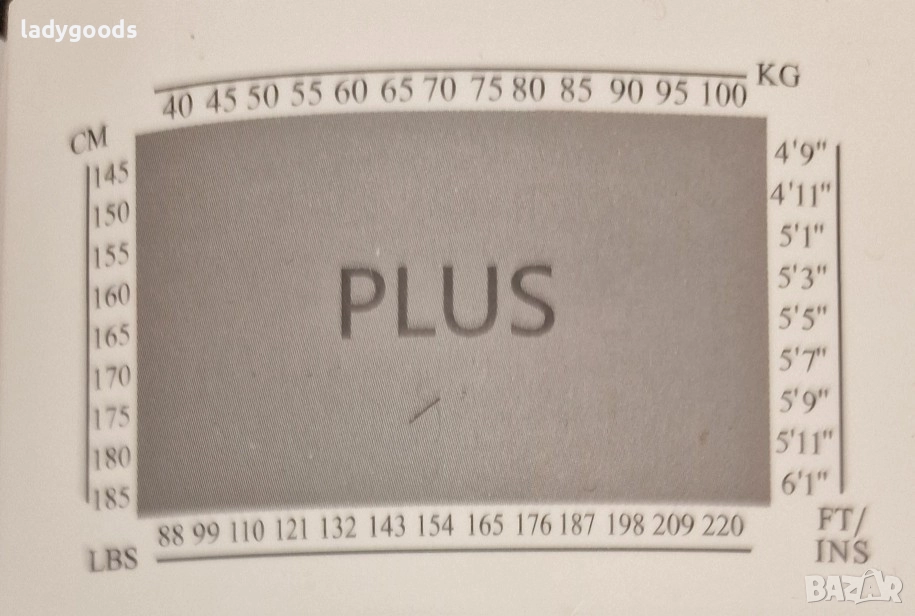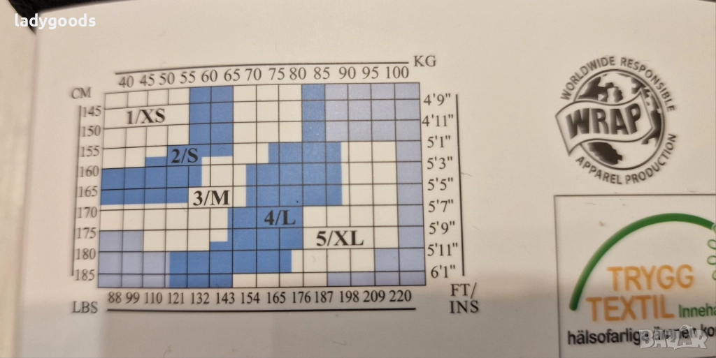 L/XL (подходящ за обиколка на талията от 78 см до 92 см, обиколка на ханша от 100 см до 116 см, височина 163 см-175 см)