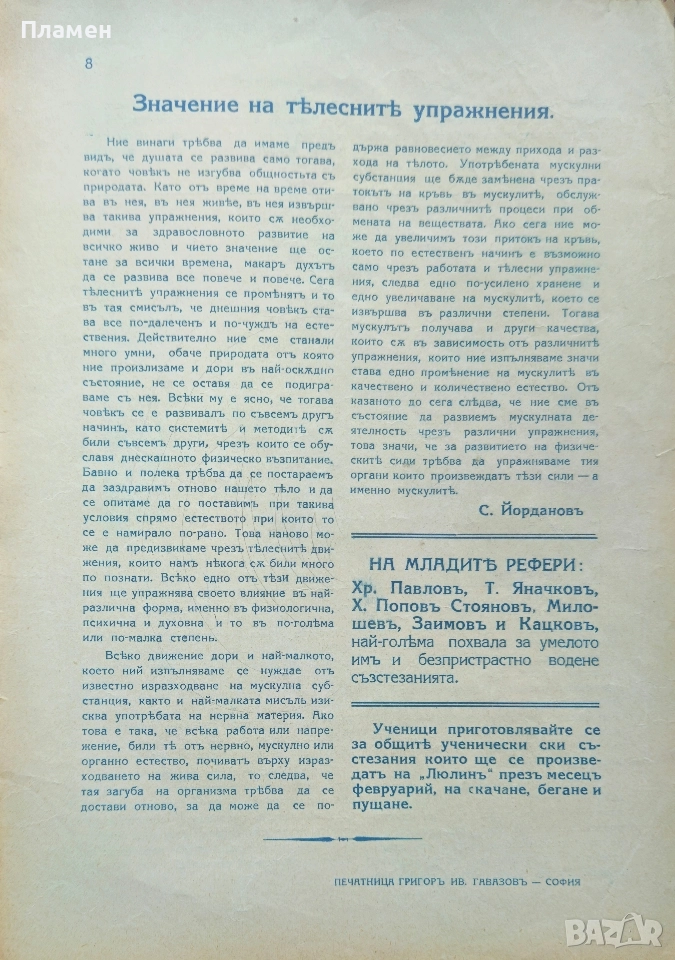 Тяло и духъ. Списание за физическото възпитание на учащата се младежъ. Год. 1: Бр. 1 / 1932 -в 8 страници -35 лв.