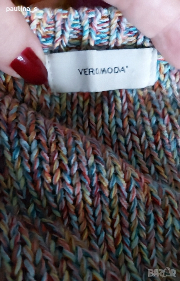 1️⃣. Vintage! S / XL - "Vero Moda". Цената е крайна, без пазарлъци 24,99лв / 12,5 евро. Памучен пуловер с атрактивна плетка. Преждата е от почти всички цветове на спектъра, весел лек удобен и много ефектен. Ръкавите са като дантелени, подходящ е за всички сезони, като мрежа. Самото плетиво е рехаво и в никакъв случай не запарва.